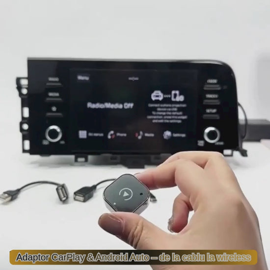 Transformă experiența CarPlay cu adaptorul nostru wireless. Fără cabluri deranjante, fără baterii de încărcat și cu instalare rapidă Plug & Play, poți conecta iPhone-ul sau Android-ul la mașina ta în câteva secunde și să gestionezi totul direct de pe aplicație.