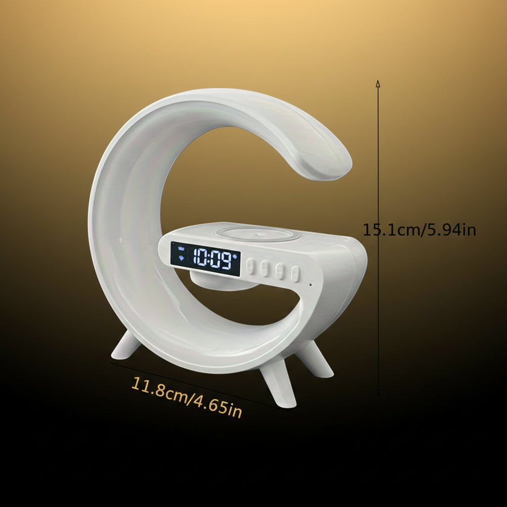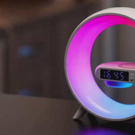 Transformă orice spațiu într-un loc modern și relaxant cu Smart Speaker-ul Multifuncțional 4-în-1. Conceput pentru uz zilnic, acest dispozitiv inteligent combină sunet de calitate, încărcare wireless rapidă, lumină ambientală RGB și ceas cu alarmă într-un design elegant, perfect pentru dormitor, living sau birou.