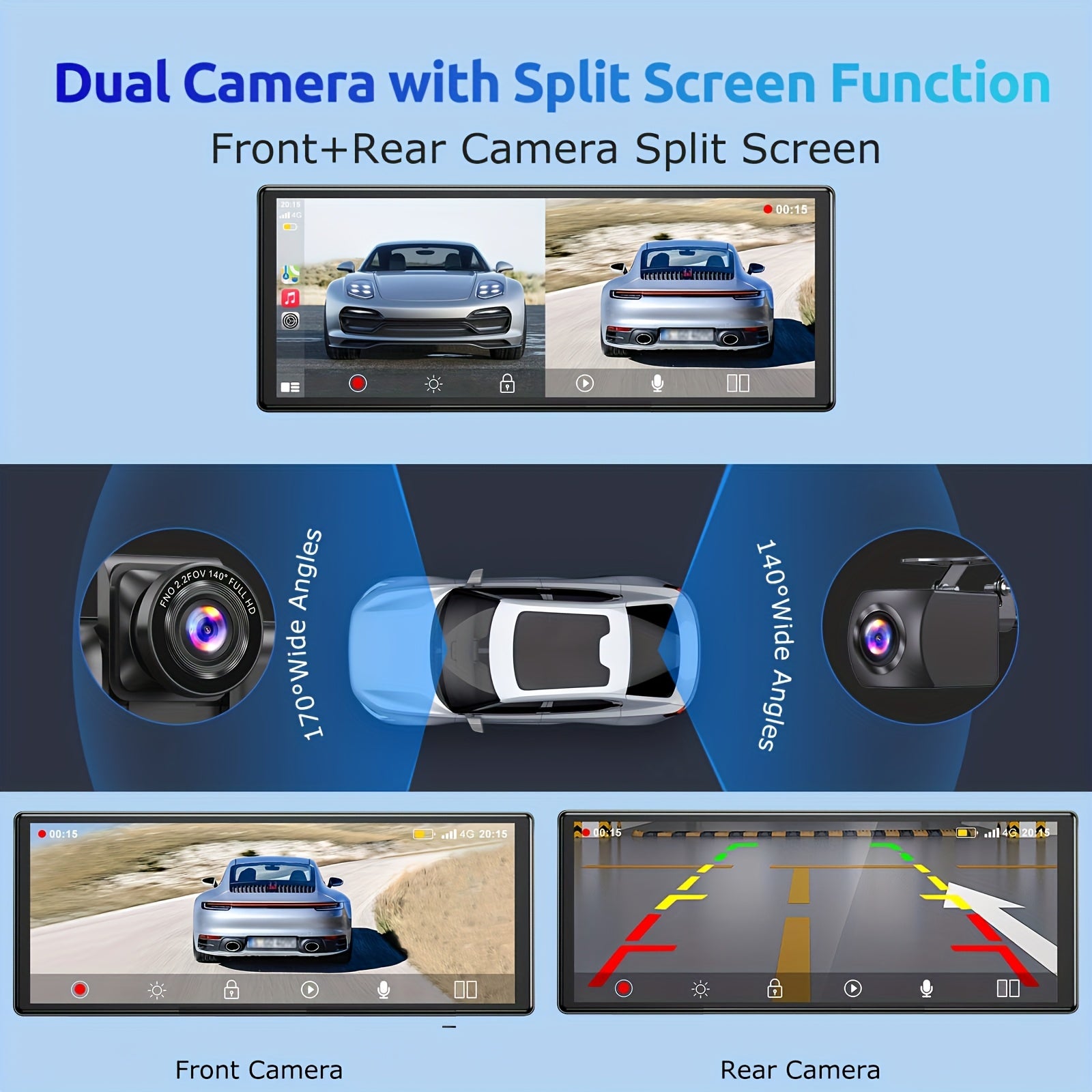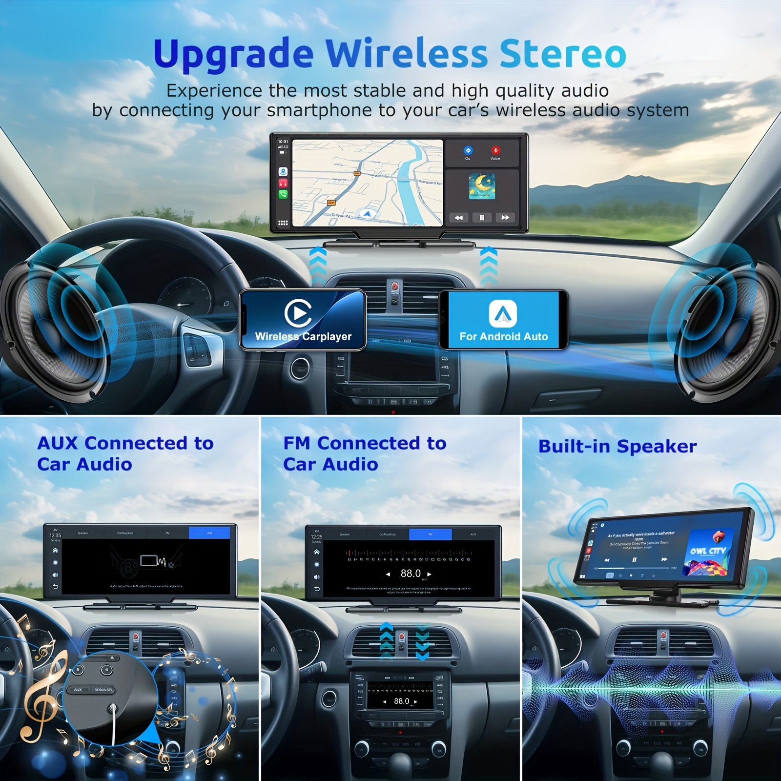 Sistem Auto Portabil 10,26” cu CarPlay Wireless și Android Auto, Cameră Duală, Hands-Free